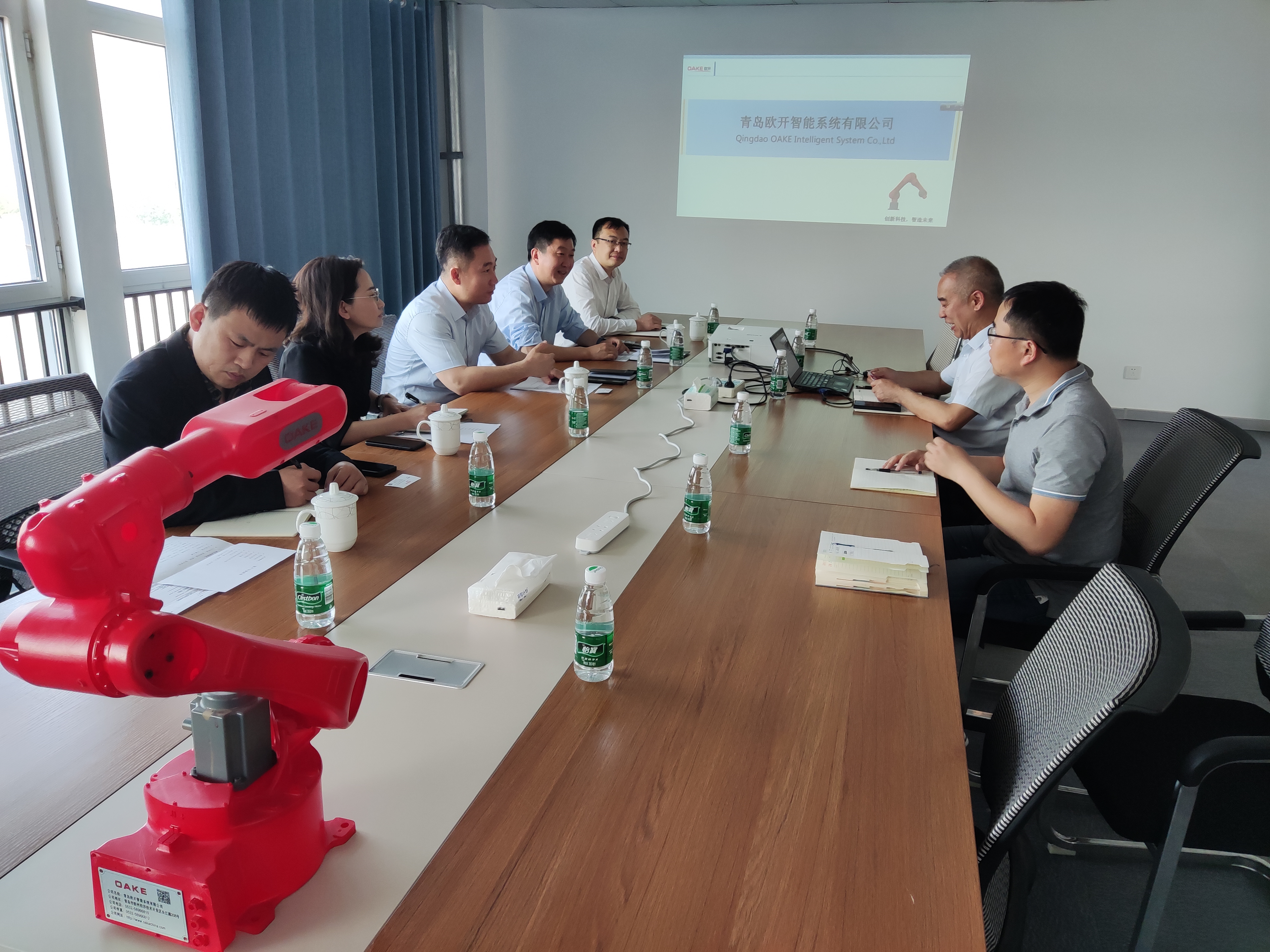下午3點(diǎn),青島市人才發(fā)展集團總經(jīng)理王浩、青島人才集團總經(jīng)理劉建斌一行5人到達我司進(jìn)行參觀(guān)考察。歐開(kāi)董事長(cháng)張曉蘭、機器人事業(yè)部總監王均磊、信息化事業(yè)部經(jīng)理&黨支部書(shū)記劉天慧、HR經(jīng)理李添添共同接待。雙方就高層次人才引進(jìn)及落地,高層次人才創(chuàng )新技術(shù)孵化,高層次人才創(chuàng )業(yè)投資進(jìn)行深入地溝通,最終雙方達成合作意向,祝愿雙方未來(lái)攜手共贏(yíng)。