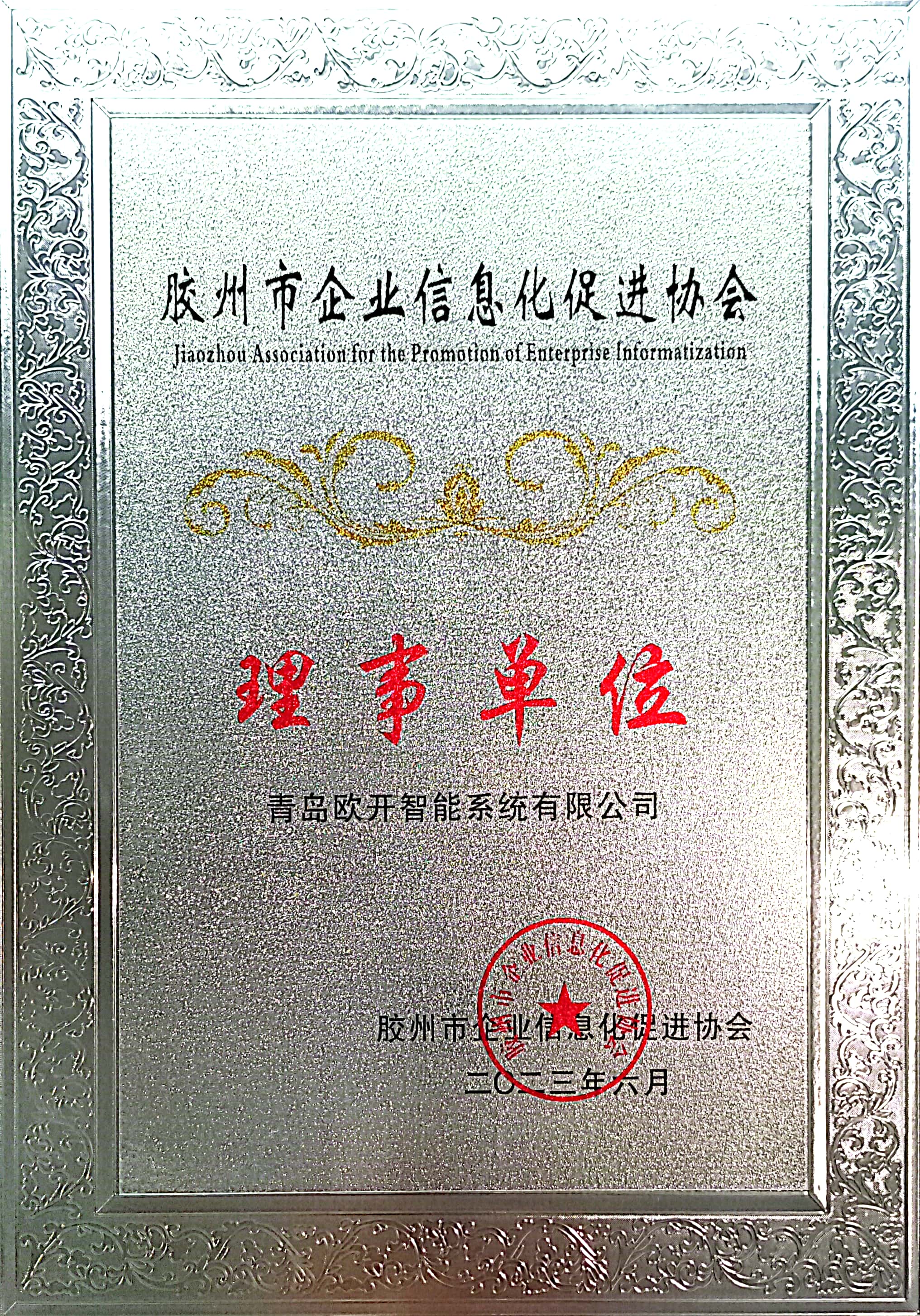 會(huì )議上協(xié)會(huì )進(jìn)行了上半年工作總結與下半年工作計劃,協(xié)會(huì )各單位對下半年工作計劃進(jìn)行討論并提出工作建議或需求。歐開(kāi)智能作為新入會(huì )會(huì )員單位參與授牌儀式,正式成為膠州市企業(yè)信息化促進(jìn)協(xié)會(huì )理事單位。